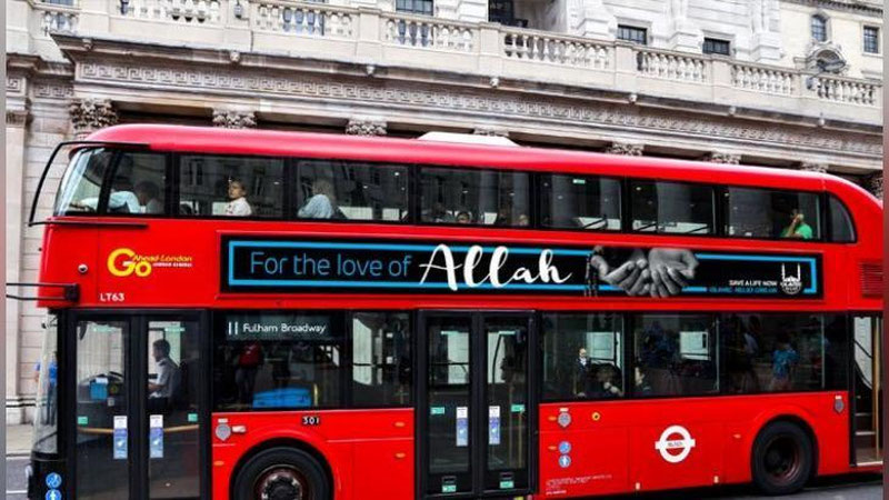 Исломий жамғарма вакиллари айтганига таяниб Гео Нюс нашрининг хабар беришича, “Аллоҳ ризолиги учун, ҳаётни сақлаб қол” шиори ёзилган Лондон шаҳридаги машҳур икки қаватли 75та қизил автобус, 6 май якшанба кунига қадар ўз йўналишида йўловчиларни манзилига етказади.